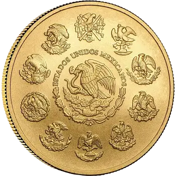 Auf der Motivseite strahlt die Siegesgöttin Libertad mit ausgebreiteten Flügeln auf einer Säule vor den Vulkanen Iztaccihuatl und Popocatepetl. Dies verleiht der Münze eine majestätische Aura, die durch die präzise Gravierung verstärkt wird. Eingraviert sind die Worte '1 onza, oro puro' sowie Jahrgang und Feinheit 'Ley .999'. Die Rückseite zeigt das Landeswappen von Mexiko: Ein Adler, der eine Schlange erlegt, umgeben von weiteren Wappen. Diese Darstellungen, zusammen mit der Inschrift 'Estados Unidos Mexicanos', symbolisieren den Stolz und die kulturelle Tiefe Mexikos.